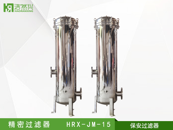 精密過濾器又稱保安過濾器,一般設置在壓力容器之前,以去除濁度1度以上的細小微粒,來滿足后續(xù)工序?qū)M水的要求;有時也設置在整個水處理系統(tǒng)的末端,防止細小微粒(如破碎的樹脂)進入成品水。