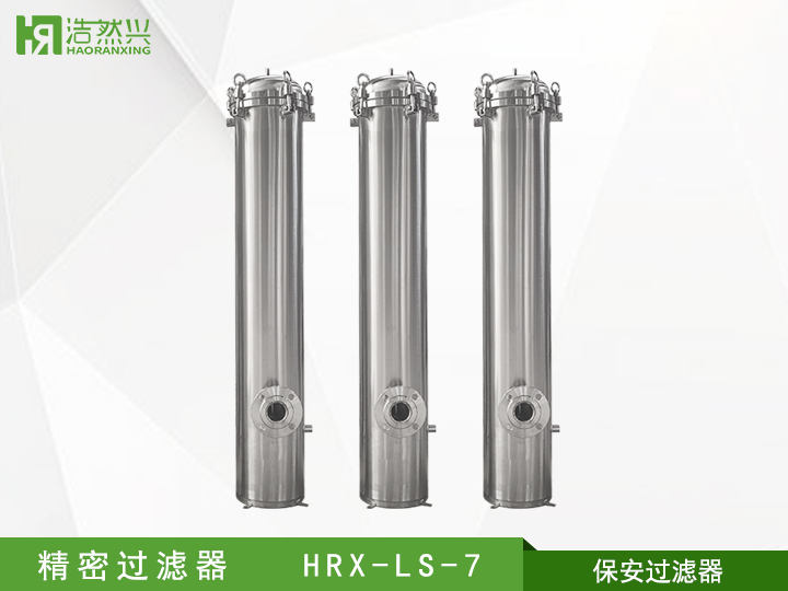 精密過(guò)濾器又稱保安過(guò)濾器,一般設(shè)置在壓力容器之前,以去除濁度1度以上的細(xì)小微粒,來(lái)滿足后續(xù)工序?qū)M(jìn)水的要求;有時(shí)也設(shè)置在整個(gè)水處理系統(tǒng)的末端,防止細(xì)小微粒(如破碎的樹(shù)脂)進(jìn)入成品水。